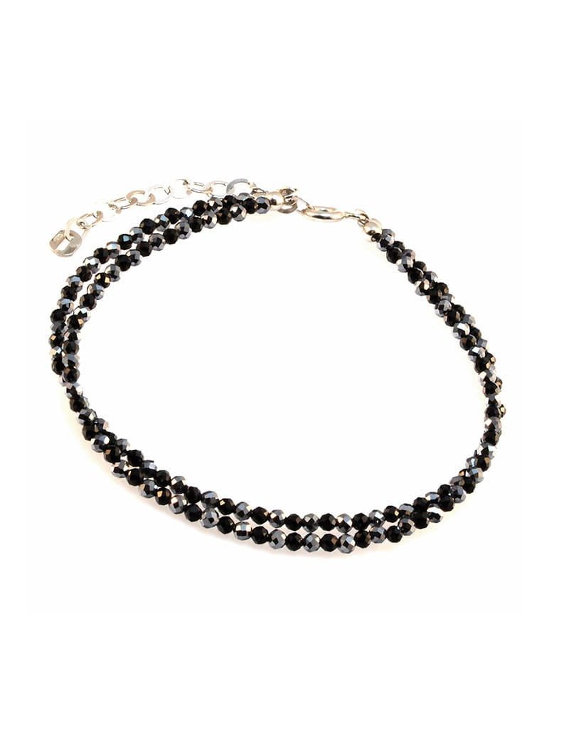 Srebrna podwójna bransoletka z turmalinem, wykonana ze srebra rodowanego próby 925