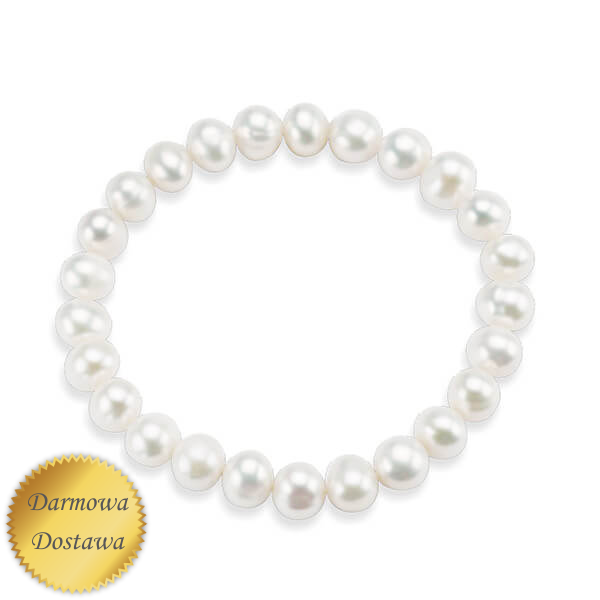 Bransoletka z naturalnych pereł hodowlanych słodkowodnych o długości 19cm w kolorze szlachetnej bieli o jakości B. Bransoletka bez zapięcia, na elastycznej gumce. Średnica pereł wynosi ok.8 mm.