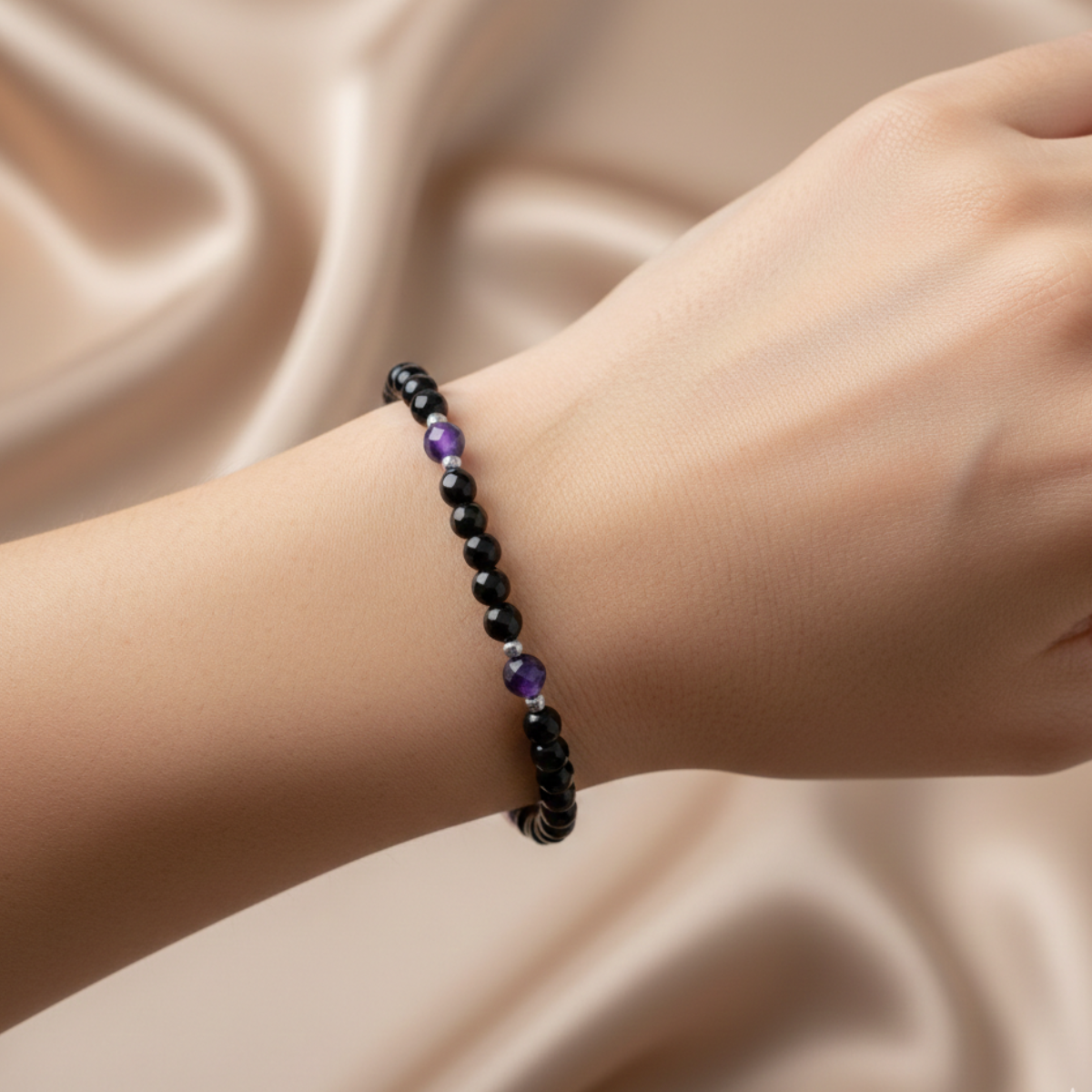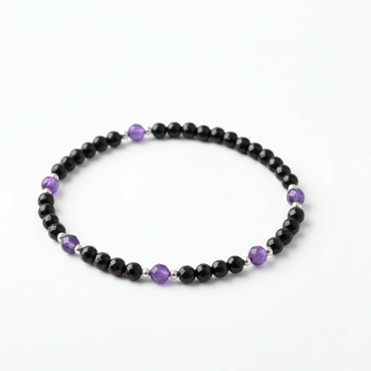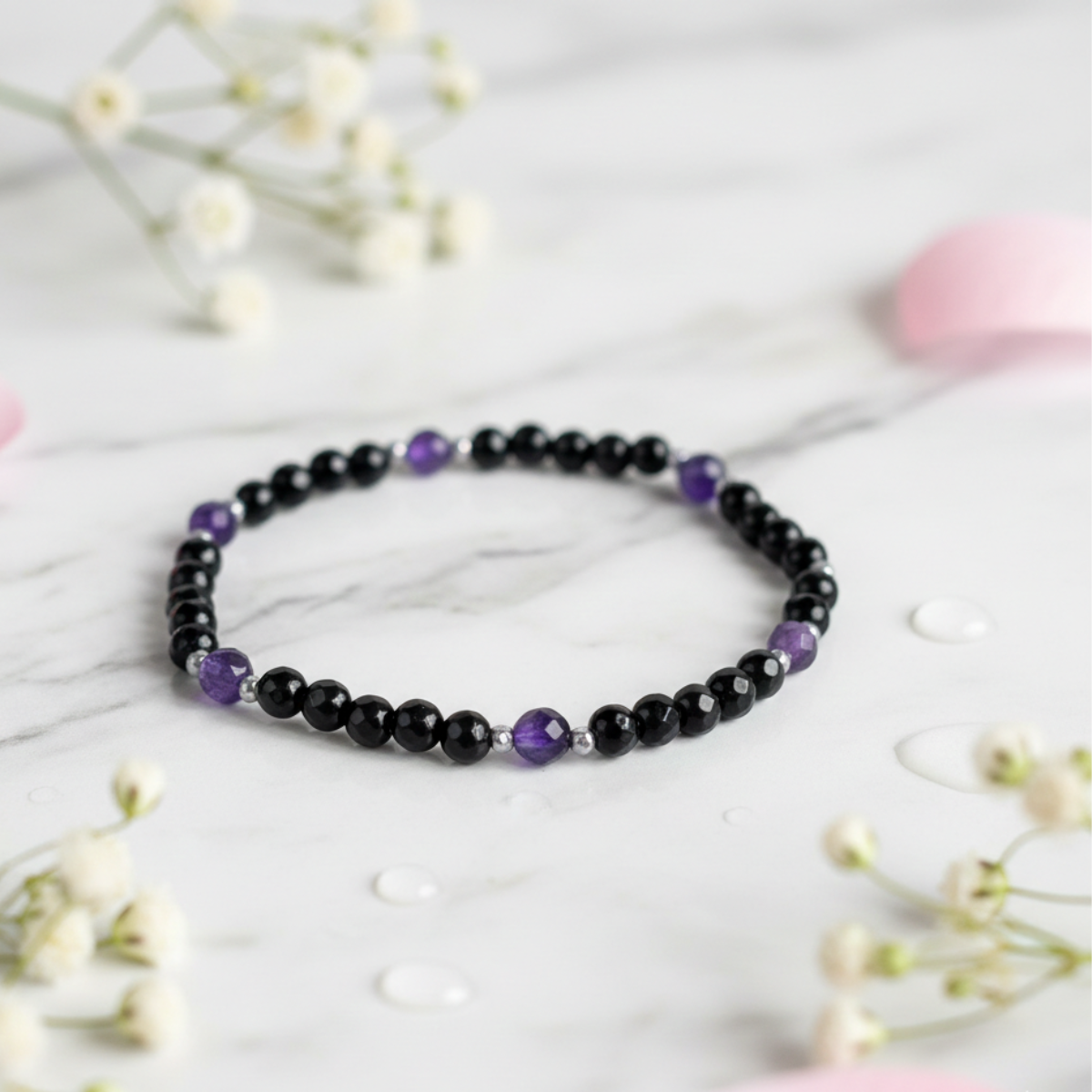 Odkryj elegancką głębię bransoletki z onyksem na gumce, która jest idealnym ucieleśnieniem nowoczesnego stylu połączonego z klasycznym pięknem. Ta bransoletka, w których główną rolę gra onyks, znany ze swojej mocnej energii ochronnej, jest doskonałym wyborem dla osób ceniących równowagę i wytrwałość.