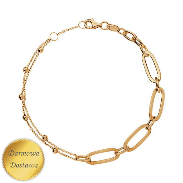 Podkreśl swój indywidualny charakter z naszą złotą bransoletką, która jest zarówno doskonałym wyborem na codzienne okazje, jak i na eleganckie eventy. Wybierz biżuterię, która będzie błyszczeć razem z Tobą i doda wdzięku Twoim stylizacjom.