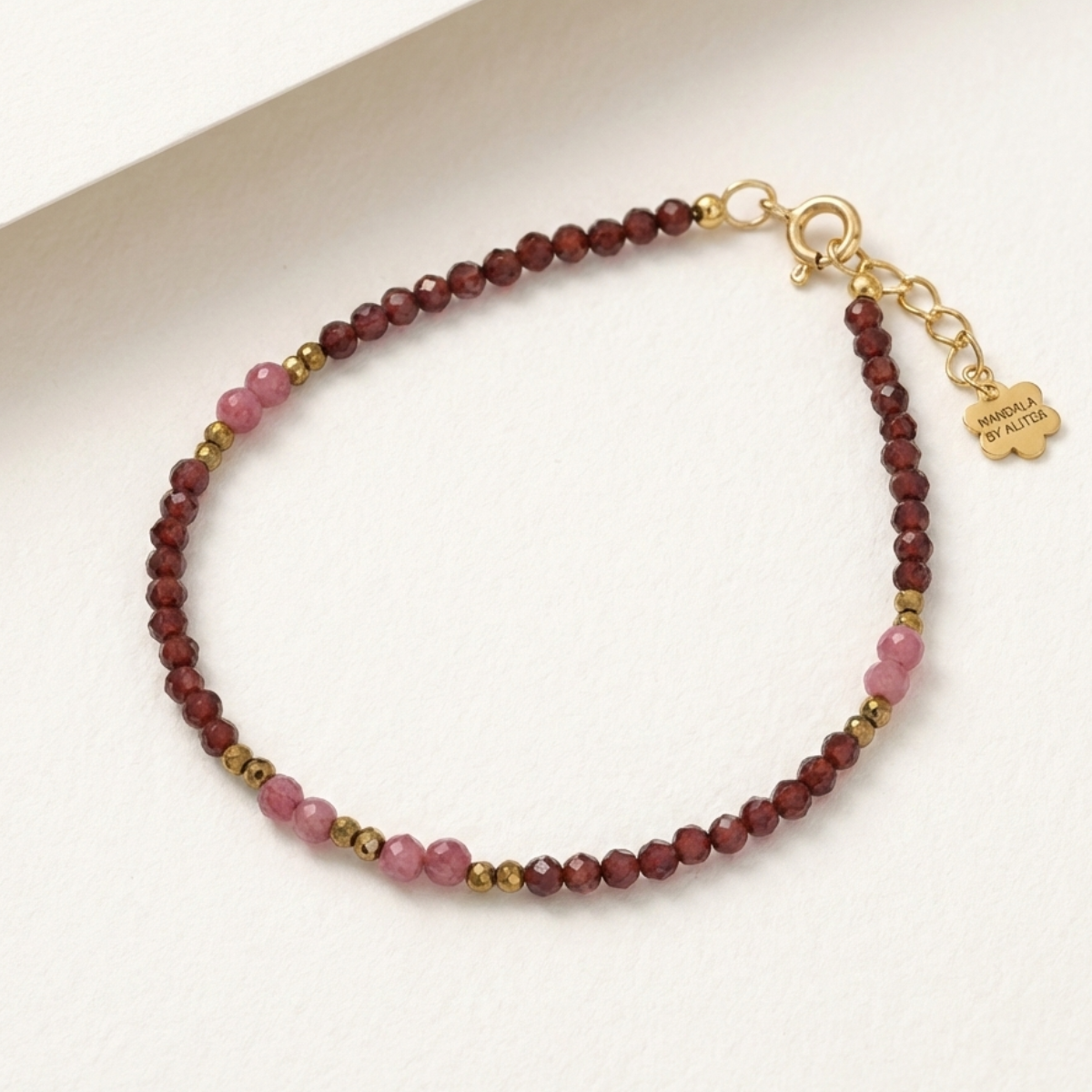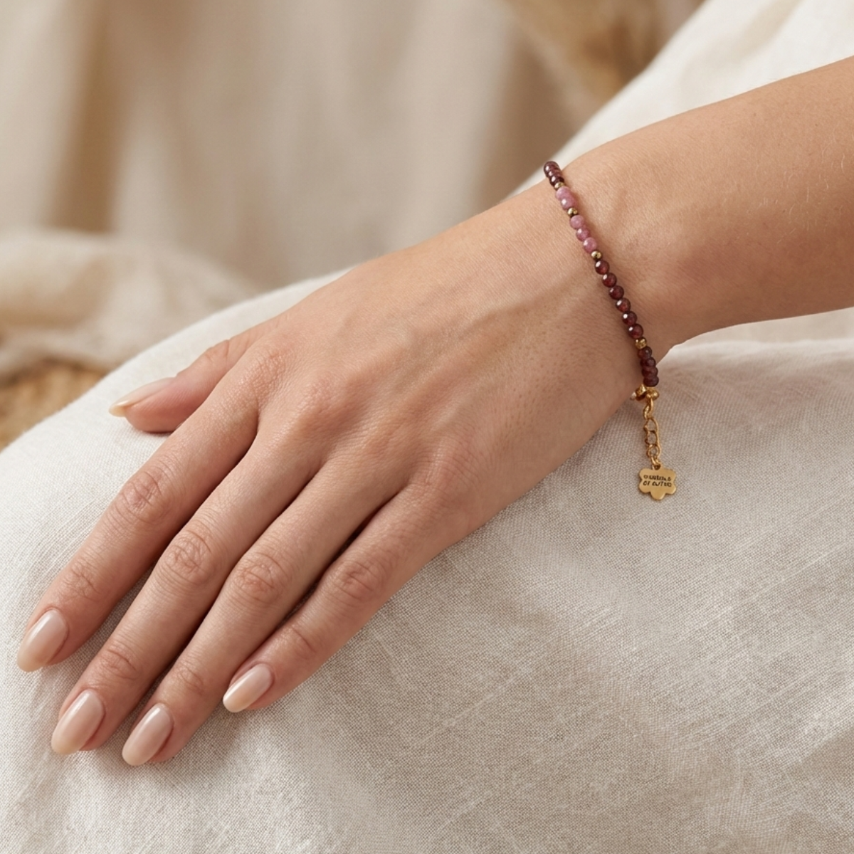 W astrologiczne znaczenie Barana wpisuje się odwaga i pewność siebie, a te wyjątkowe kamienie są w tej bransolecie nie przez przypadek. Hematyt koncentruje energię, różowy turmalin kieruje ją na realizację celów, a granat dodaje wytrwałości, co razem tworzy potężny talizman wspierający Barana w codziennych wyzwaniach.