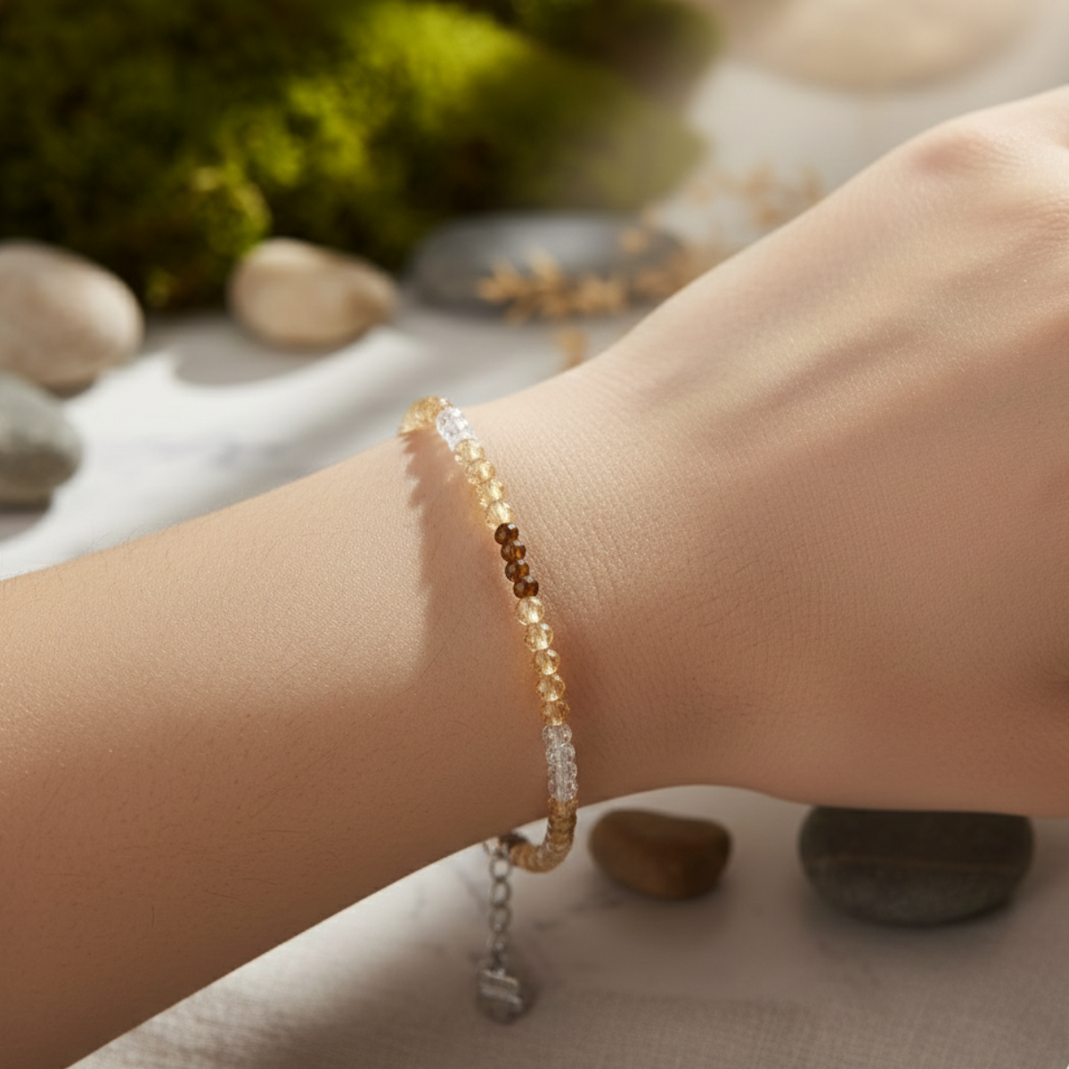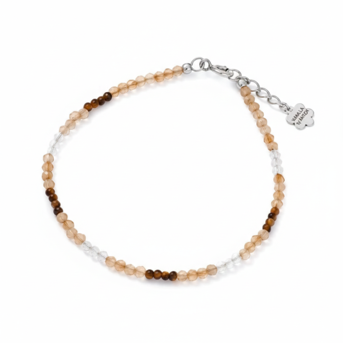 Jako znak o podwójnej naturze, Bliźnięta cenią wszechstronność i komunikację. Tygrysie oko w tej bransoletce ma stanowić wsparcie w odkrywaniu świata, topaz jest symbolem samopoznania, a cytryn pomoże w zrównoważeniu zmiennych nastrojów, które często towarzyszą tym urodzonym pod tym znakiem.