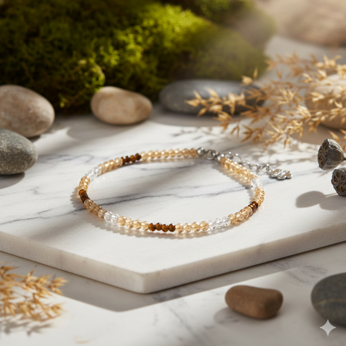 Ta starannie wykonana bransoletka uosabia żywiołową esencję Bliźniąt, znaku powietrza charakteryzującego się adaptowalnością i inteligencją. Wykorzystując energię kamieni, takich jak tygrysie oko, topaz i cytryn, bransoletka ta ma na celu inspirować Bliźnięta do eksploracji nowych horyzontów, głębszego rozumienia siebie i harmonizowania emocji.