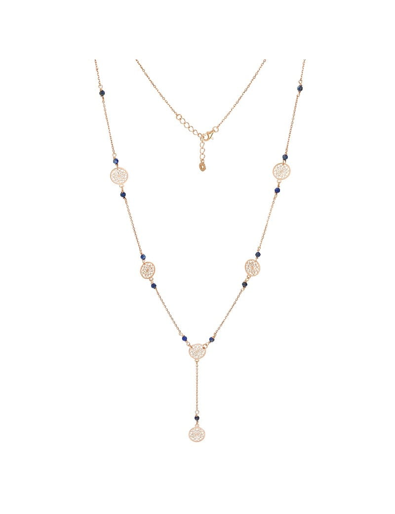 Naszyjnik z lapisem, wykonany ze srebra próby 925 , pozłacanego 18 karatowym, różowym złotem
