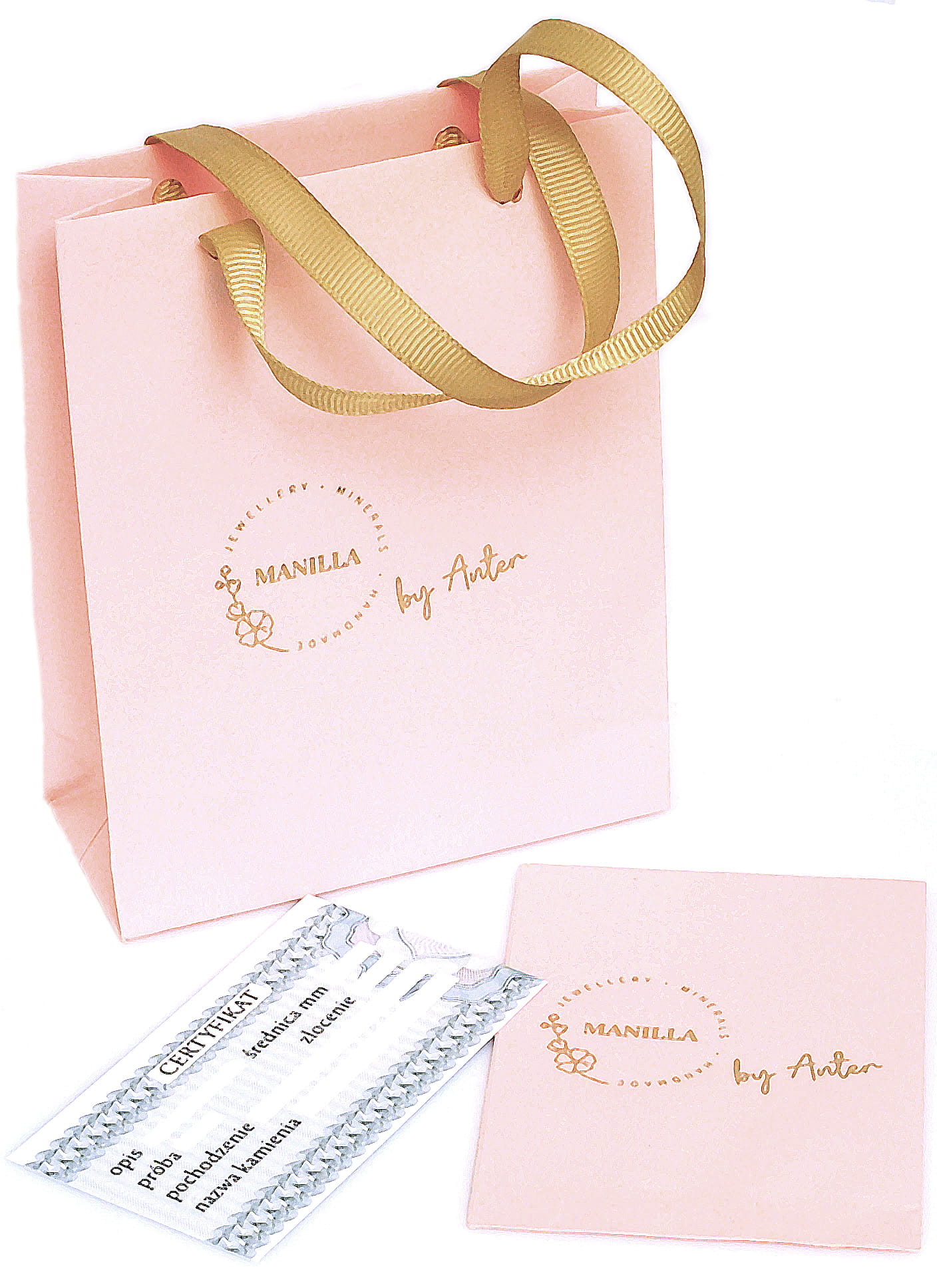 Biżuteria posiada certyfikat potwierdzający oryginalność produktu wraz z próbą srebra oraz opisem kamienia, a dodatkowo w zestawie dołączone jest opakowanie oraz elegancka torebka prezentowa z logo firmy.
