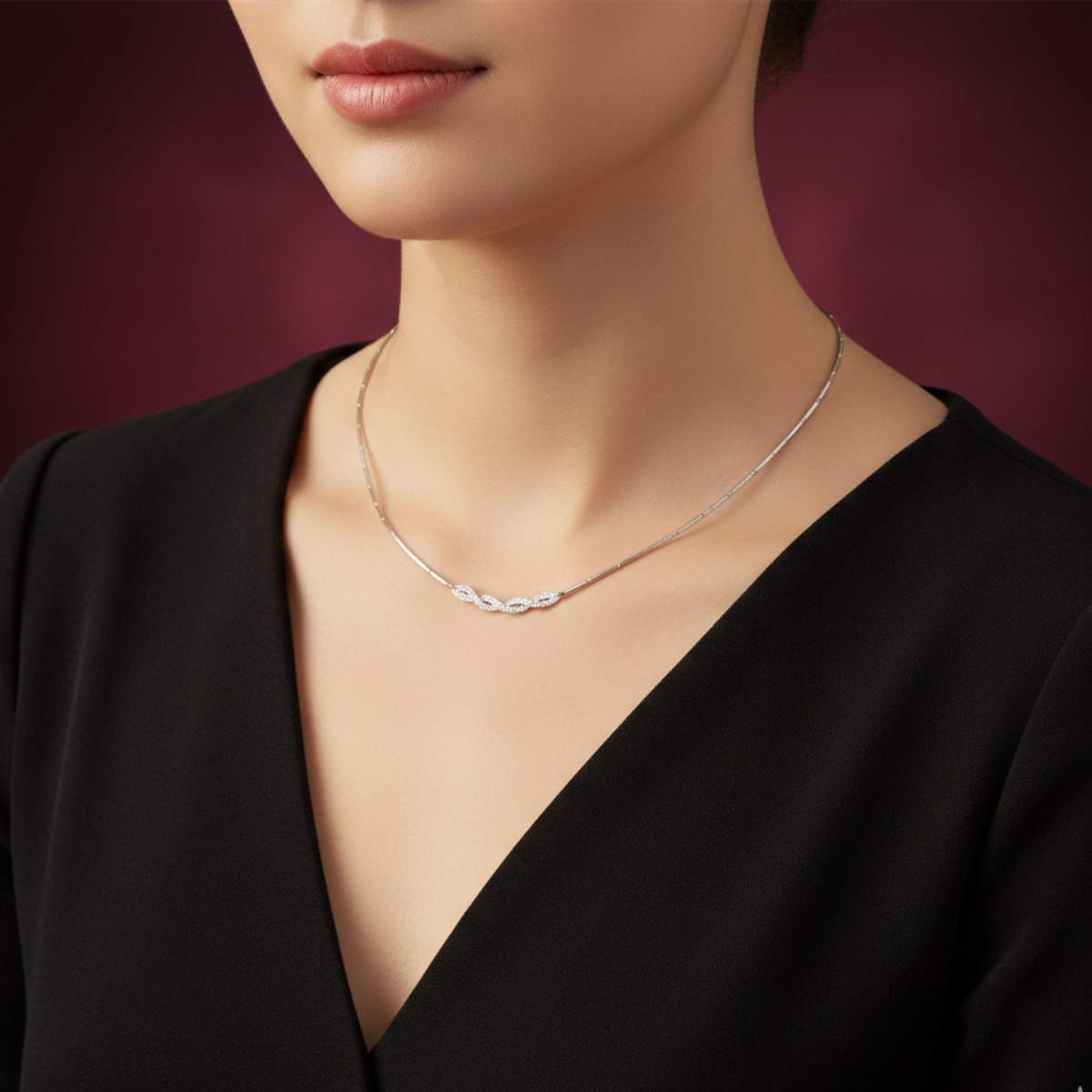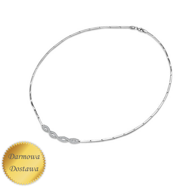Piękna kolia z cyrkoniami wykonana w całości ze srebra próby 925. Naszyjnik doskonale prezentuje się na szyi, może być eleganckim dodatkiem do sukni ślubnej lub wieczorowej.