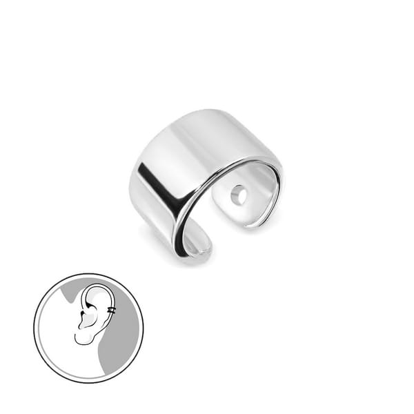 Kolczyk w modnej formie nausznicy / mankietu do ucha, wykonany w całości ze srebra najwyższej próby 925. Solidny, pełny i szeroki wzór dodaje kolczykowi drapieżności.